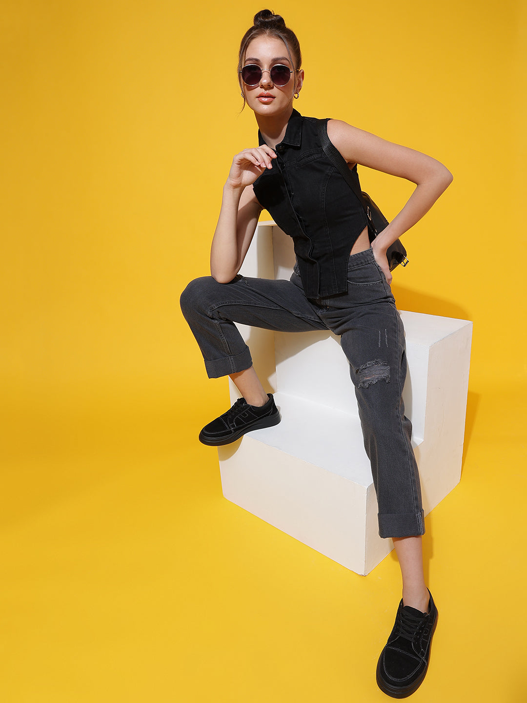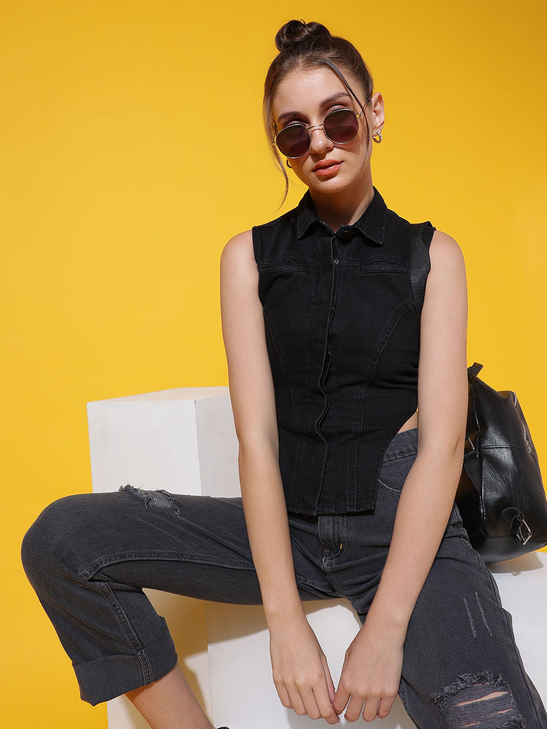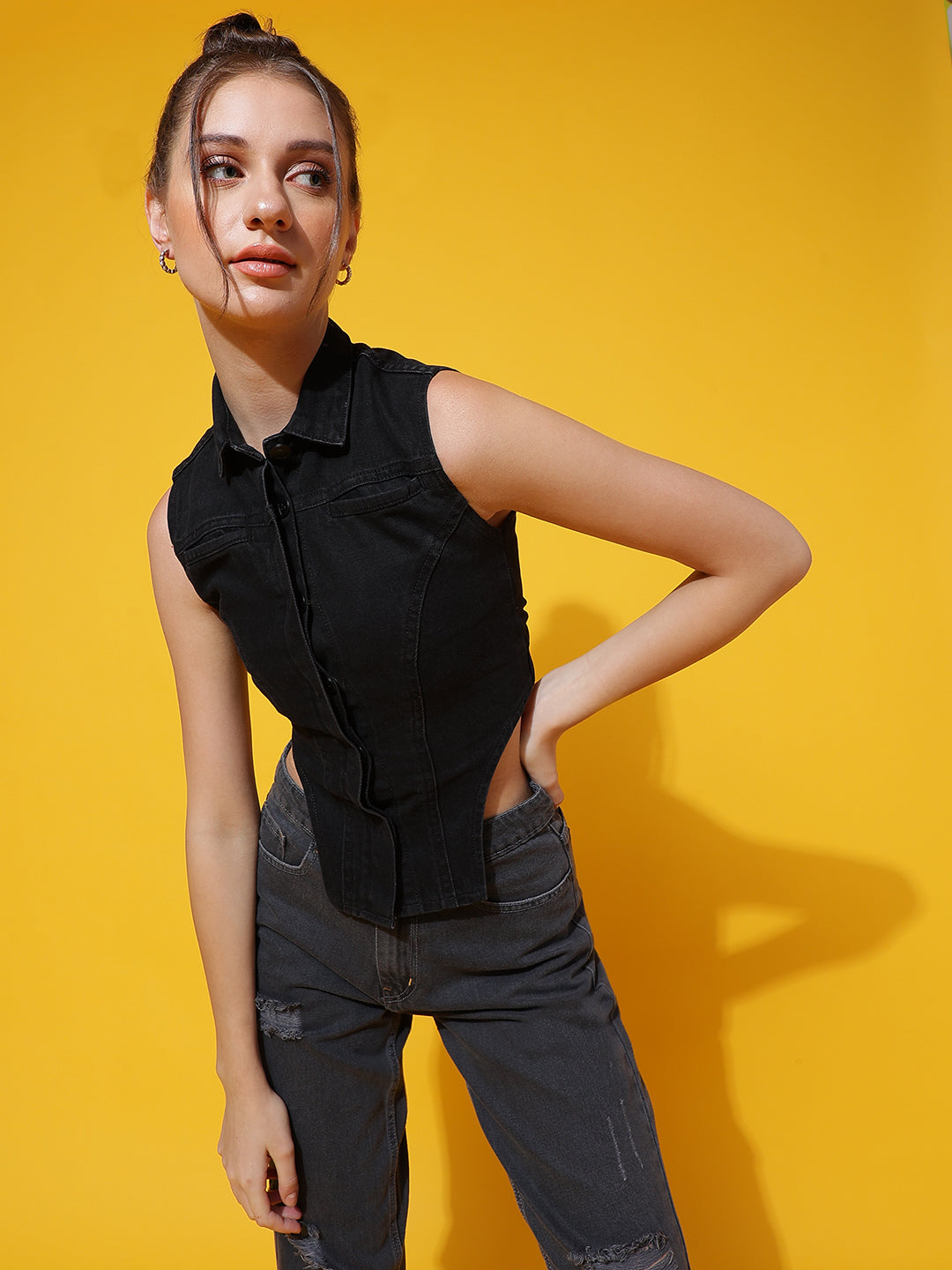 Black Collared Corset Top