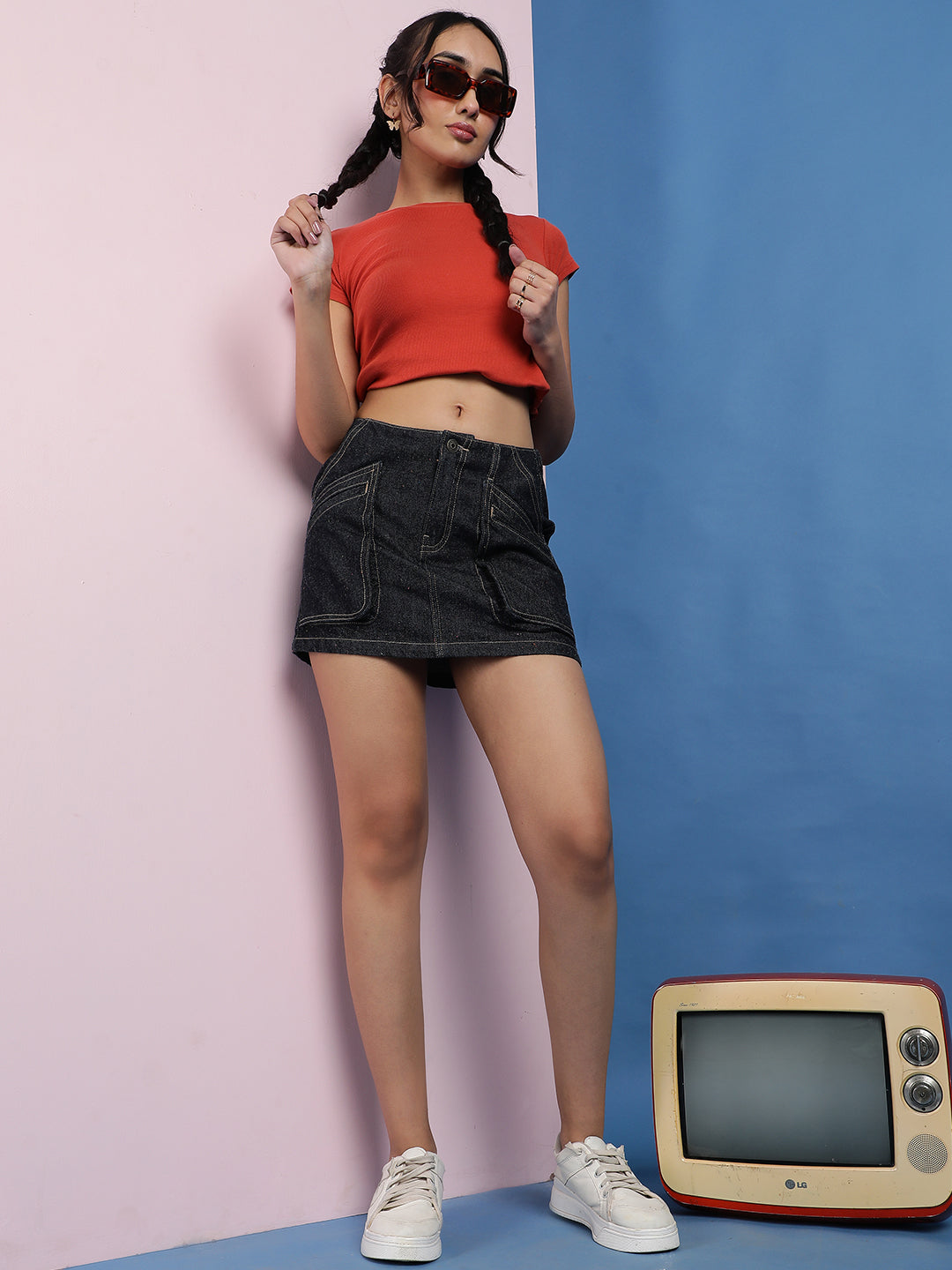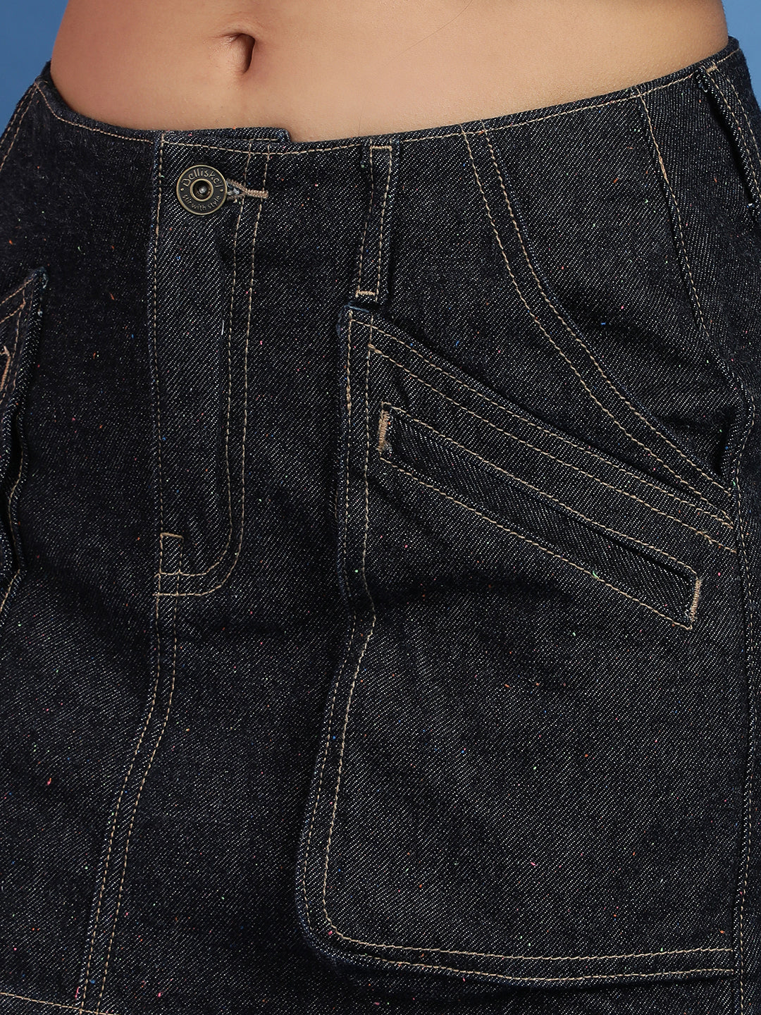 Elevate your everyday style with the Belliskey Women’s Dark Blue Denim Mini Skirt. Designed for the modern woman who loves comfort without compromising on style, this mini skirt features a solid dark blue hue that is both timeless and trendy. The high-rise fit and structured silhouette flatter your figure while giving you a bold, confident look. Crafted from premium quality denim, the fabric offers durability and softness for all-day wear. The standout feature of this skirt is its oversized utility-inspired front pockets, which add a touch of edge and functionality to the classic mini skirt design. The secure button closure at the front ensures a snug fit, while the clean stitch detailing highlights the craftsmanship. Whether you’re pairing it with a tank top and sneakers for a casual outing or a blouse and boots for a night out, this skirt adapts to your mood and the moment.