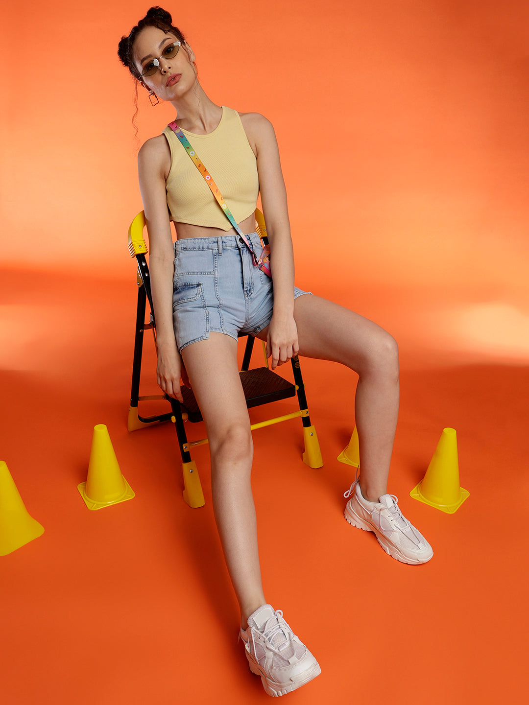 Take your style quotient one notch up this season wearing this modish light-Blue Shorts from the latest collection of Belliskey. Featuring a button and a zip closure with two pockets on the front sides. Stitched to a solid pattern, it adds up to your versatile wardrobe. Crafted with good quality denim fabric, it assures the utmost comfort. Perfect for casual outings or weekend parties. Match it with a solid Black top and Black sneakers and you are all set to leave.