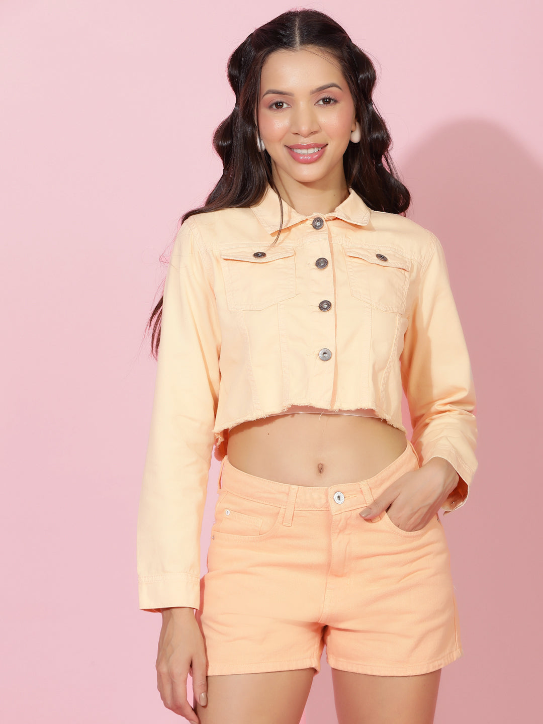 The BELLISKEY Women’s Denim Cropped Jacket is the perfect addition to any wardrobe, offering timeless style with a casual edge. Designed with a regular fit with full length sleeve and a solid pattern, this jacket delivers a classic look that never goes out of fashion. Made from durable denim fabric, it provides both comfort and durability, making it ideal for everyday wear. The button closure adds a touch of vintage charm, while the jacket’s versatility allows you to pair it with almost any outfit. Whether you're layering it over a casual dress, wearing it with jeans, or throwing it on with leggings, this denim jacket will elevate your look while keeping you comfortable.