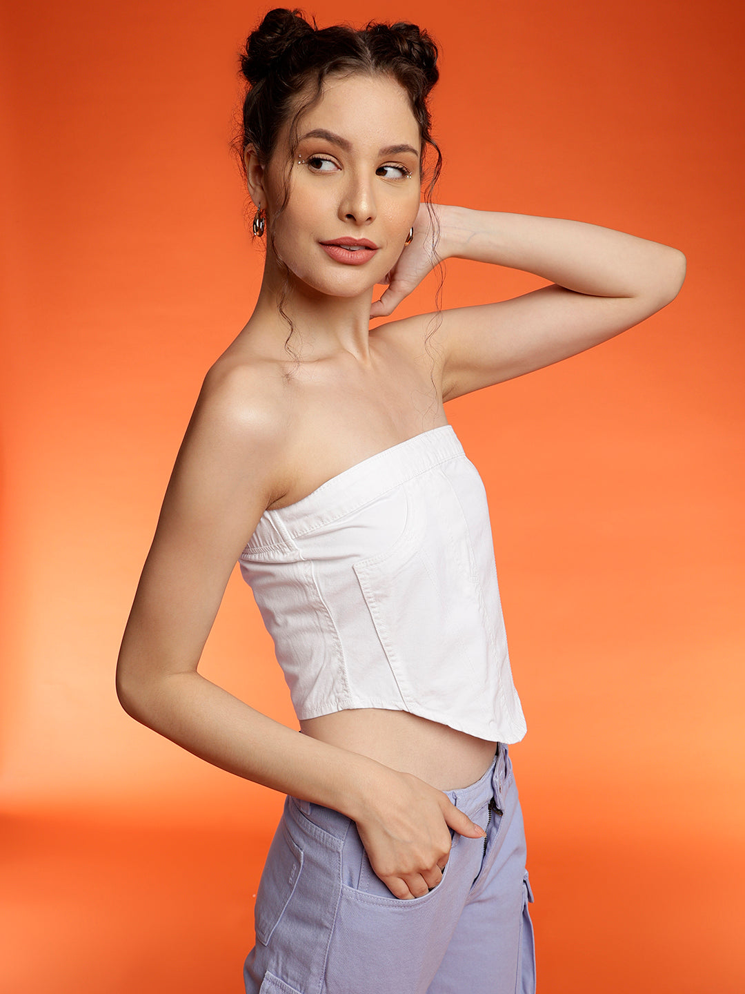 Take your fashion quotient one notch up by investing in this lovely White Top from the latest collection of Belliskey. Team it with a pair of Black jeans and Black Blazzer to achieve a stylish look.